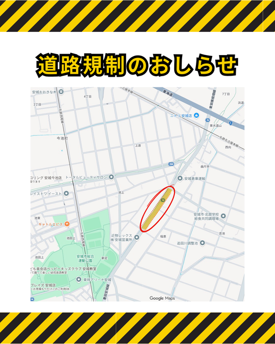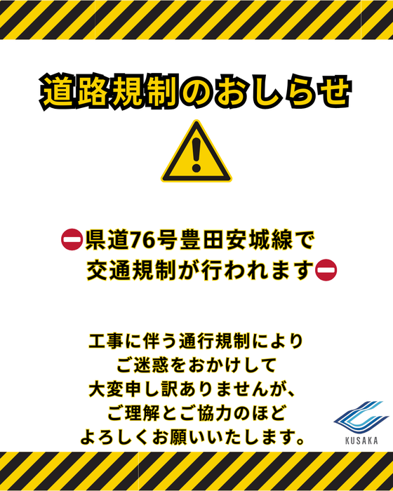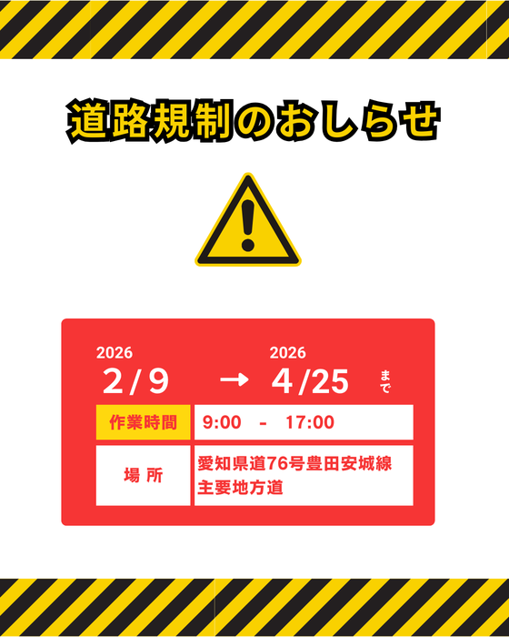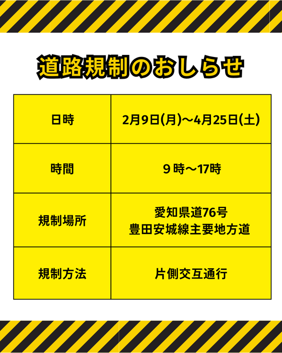 県道76号豊田安城線主要地方道で交通規制が行われます。